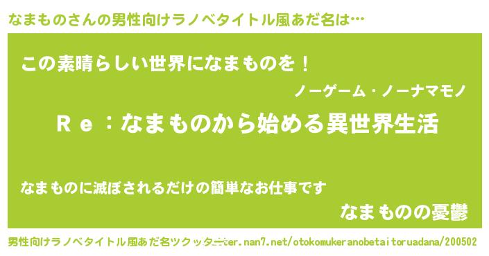 | 女子向けラノベタイトル風あだ名 | 『なまものストレイドッグス』 |