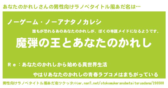 | 女子向けラノベタイトル風あだ名 | 『乙女ゲームの破滅フラグしかない悪役あなたのかれしに転生してしまった…』 |