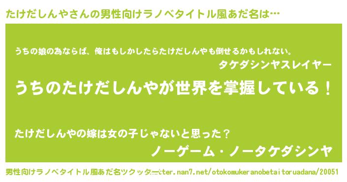 | 肩書あだ名 | 『たけだしんや艦長』『たけだしんや中尉』 |