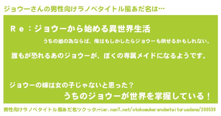| 意味不明あだ名 | 『永久保存ジョウー』『自称ジョウー』 |