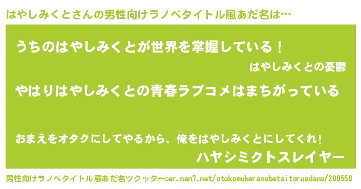| ファンタジー風あだ名 | 『エターナルハヤシミクトー』 |