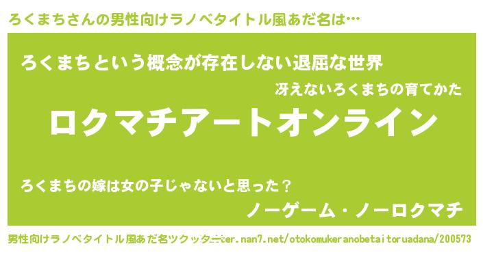 | 胡散臭い通販商品みたいなあだ名 | 『億万長者になれるブレスレット…その名も「ろくまち」』 |