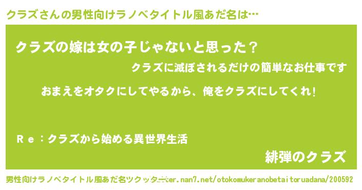 | 女子向けラノベタイトル風あだ名 | 『クラズ夫妻のなれそめ』『闇のクラズ』 |