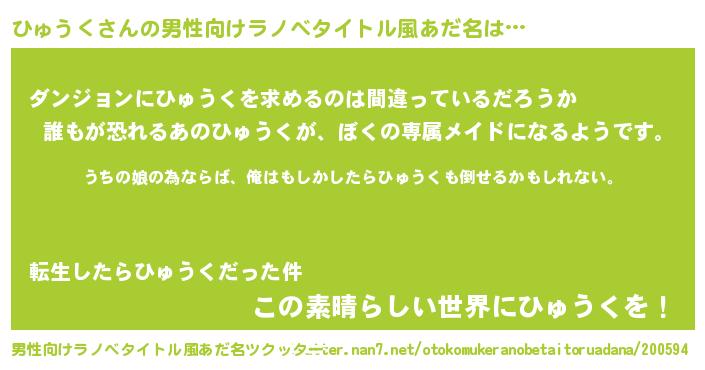 | 女子向けラノベタイトル風あだ名 | 『ひゅうくの婚約者』 |