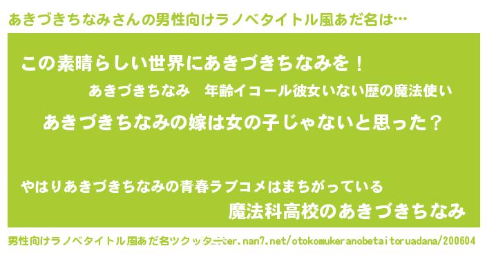 | 胡散臭い通販商品みたいなあだ名 | 『全米が絶賛したサプリメント…その名も「あきづきちなみ」』 |
