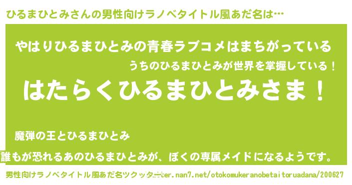 ひるまひとみさんの男性向けラノベタイトル風あだ名をツクッター!