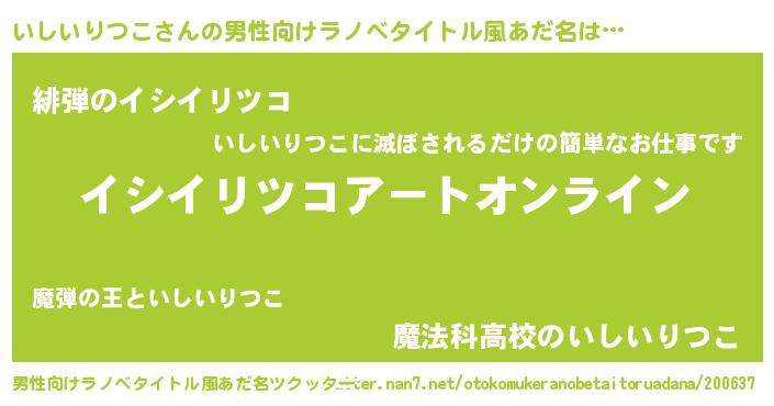 | 胡散臭い通販商品みたいなあだ名 | 『億万長者になれるブレスレット…その名も「いしいりつこ」』 |