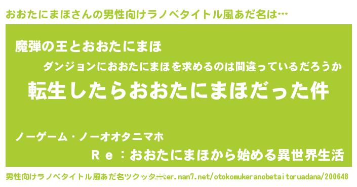 | 女子向けラノベタイトル風あだ名 | 『おおたにまほの玉の輿計画!』 |