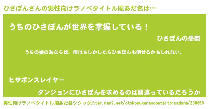 | 女子向けラノベタイトル風あだ名 | 『ひさぽんの婚約者』 |
