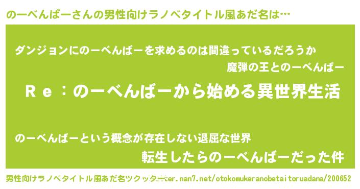 | 女子向けラノベタイトル風あだ名 | 『闇ののーべんばー』 |