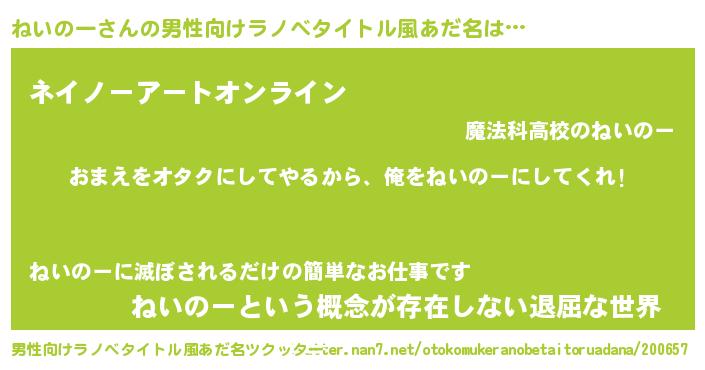 | 女子向けラノベタイトル風あだ名 | 『ねいのー恋絵巻』 |