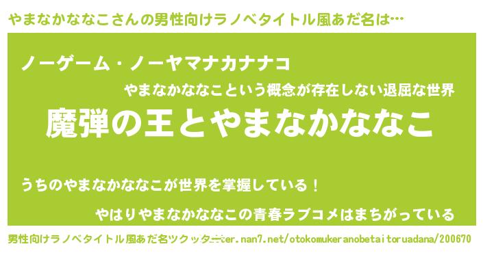 やまなかななこさんの男性向けラノベタイトル風あだ名をツクッター!