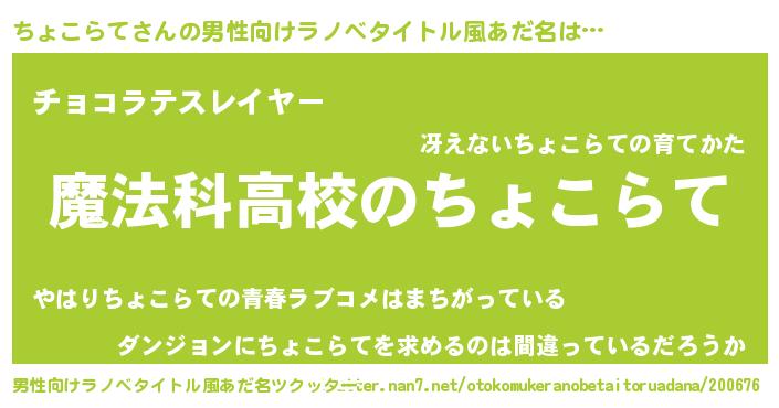 | 意味不明あだ名 | 『自称ちょこらて』『永久保存ちょこらて』 |