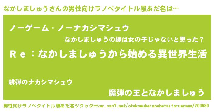| 意味不明あだ名 | 『自称なかしましゅう』 |