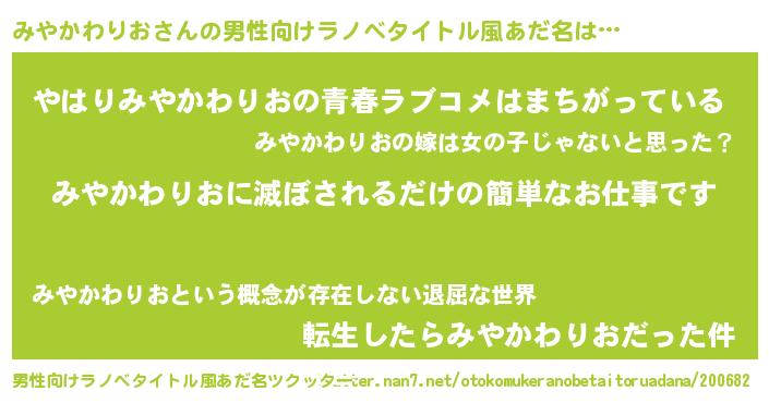 | 意味不明あだ名 | 『みやかわりおフォーエバー』 |