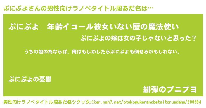 | 女子向けラノベタイトル風あだ名 | 『ぷにぷよ伯爵の花嫁』 |