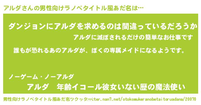 | ヘコむあだ名 | 『アルダ(笑)』『アルぷりん』 |