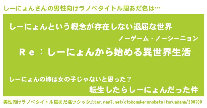 | 伝説のあだ名 | 『古文書に記された勇者しーにょん』 |