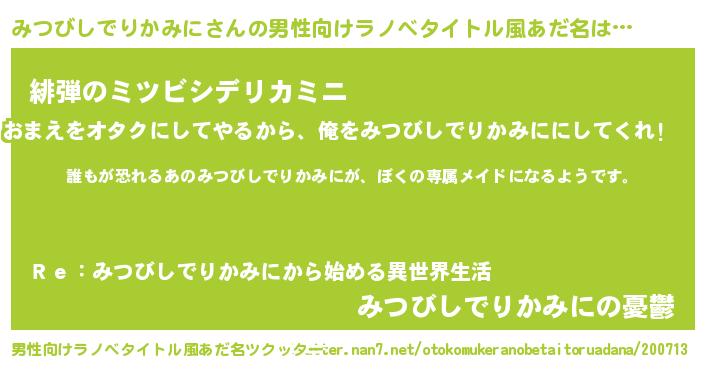 | 意味不明あだ名 | 『永久保存みつびしでりかみに』 |