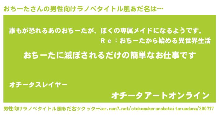 | 胡散臭い通販商品みたいなあだ名 | 『前代未聞の水素水…その名も「おちーた」』 |