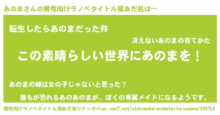 | 意味不明あだ名 | 『住所不定無職あのま(8歳)』 |