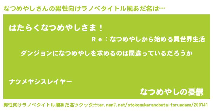 | 女子向けラノベタイトル風あだ名 | 『なつめやしの卵を拾いまして』 |