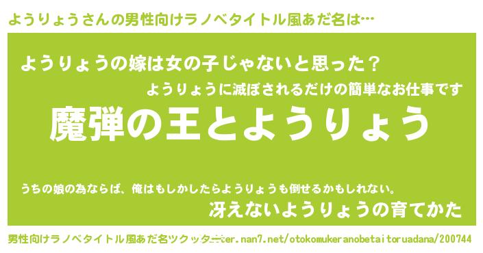 | 女子向けラノベタイトル風あだ名 | 『ようりょうが死なない童話 林檎のようりょうの診療簿』 |