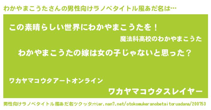 | 欧米人風あだ名 | 『ウサインわかやまこうた』 |