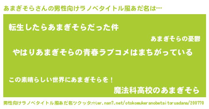 | 胡散臭い通販商品みたいなあだ名 | 『世界が平和になる高級そうな絵画…その名も「あまぎそら」』 |