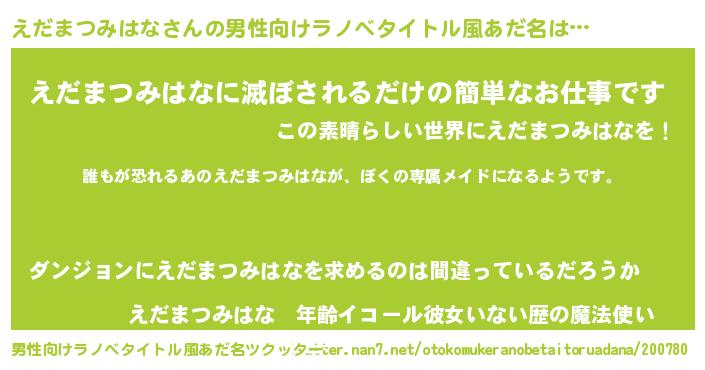 | 女子向けラノベタイトル風あだ名 | 『異世界でカフェえだまつみはなを開店しました。』 |