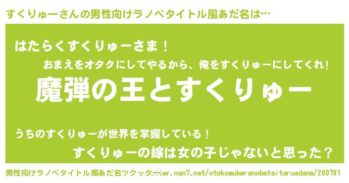 | 意味不明あだ名 | 『住所不定無職すくりゅー(39歳)』 |