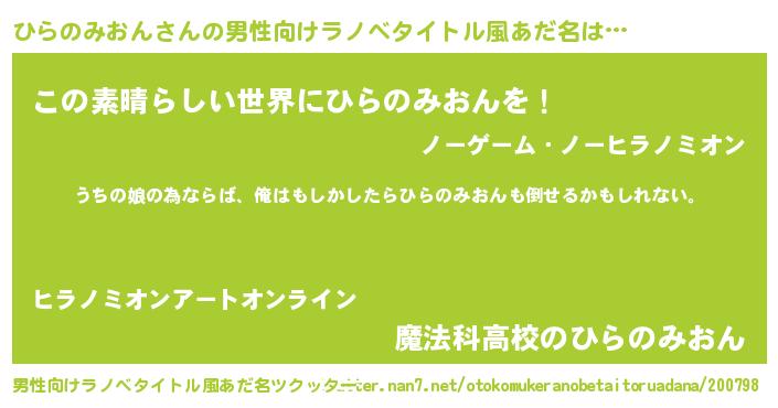 | 意味不明あだ名 | 『ひらのみおんフォーエバー』 |