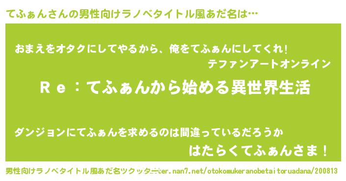 | 女子向けラノベタイトル風あだ名 | 『てふぁんストレイドッグス』 |