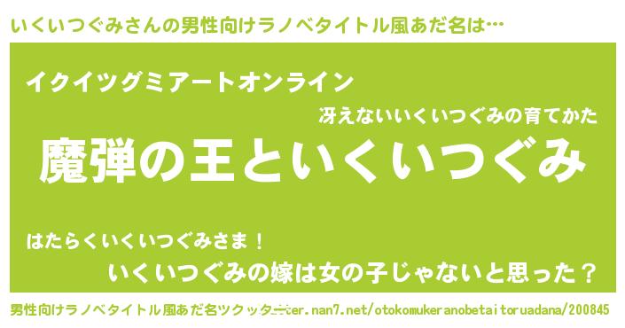 | ヒーロー風カッコイイあだ名 | 『仮面イクダー』『スーパーイクイツグミ』 |