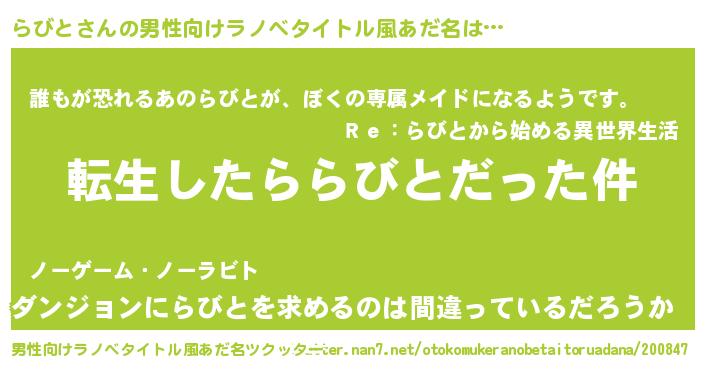 | 胡散臭い通販商品みたいなあだ名 | 『来世でも幸せになれる健康食品…その名も「らびと」』 |