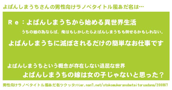 | 意味不明あだ名 | 『自称よばんしまうち』 |