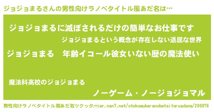 | 女子向けラノベタイトル風あだ名 | 『ジョジョまるの玉の輿計画!』 |