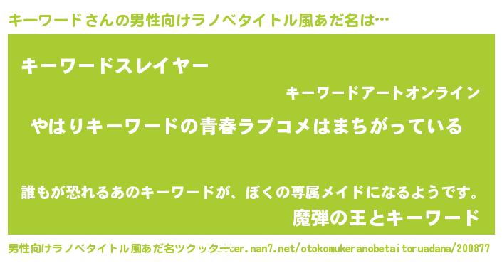 | 女子向けラノベタイトル風あだ名 | 『キーワードの雑貨屋さん』 |