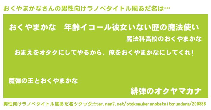 | 女子向けラノベタイトル風あだ名 | 『おくやまかな夫妻のなれそめ』 |