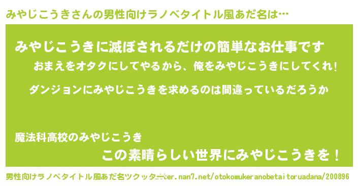 | 意味不明あだ名 | 『とにかく怪しいみやじこうき』 |