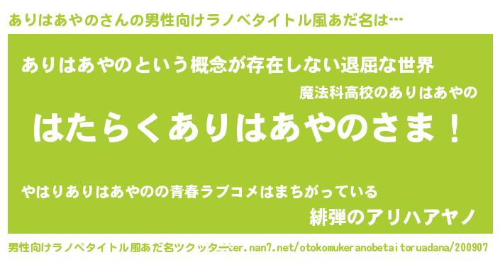 | 胡散臭い通販商品みたいなあだ名 | 『来世でも幸せになれる招き猫…その名も「ありはあやの」』 |