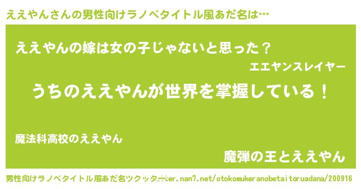 | ヒーロー風カッコイイあだ名 | 『幻影騎士エエ』『仮面エエダー』 |