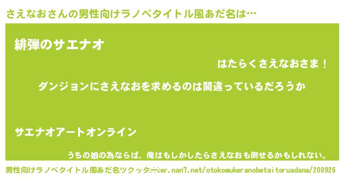 | 女子向けラノベタイトル風あだ名 | 『さえなおは平凡を望む』 |