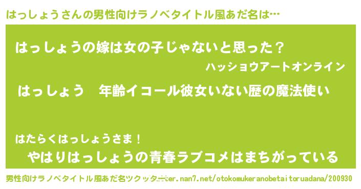 | 萌えアニメ | 主人公(はっしょう)のあだ名『 はっ殿』 |