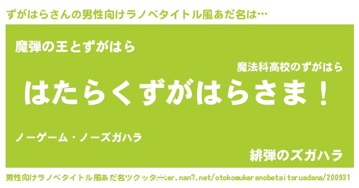 | 意味不明あだ名 | 『住所不定無職ずがはら(74歳)』 |