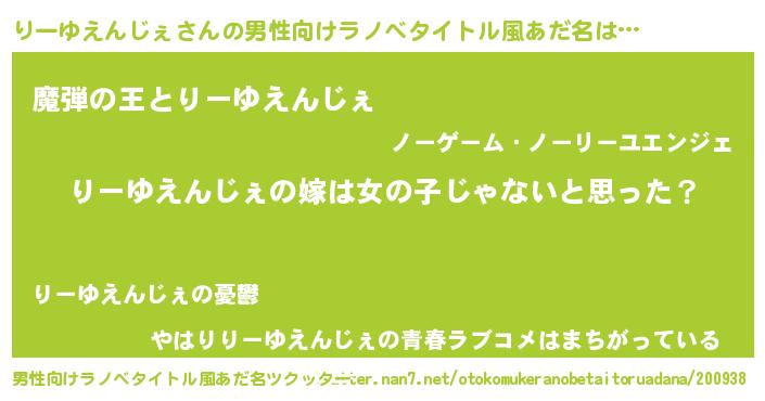 | 女子向けラノベタイトル風あだ名 | 『りーゆえんじぇの卵を拾いまして』 |