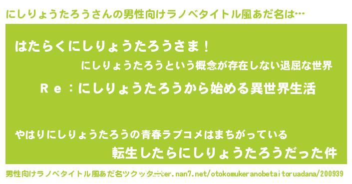 | 肩書あだ名 | 『にしりょうたろう閣下』 |