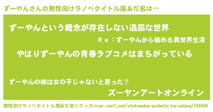 | 女子向けラノベタイトル風あだ名 | 『ずーやんの雑貨屋さん』 |
