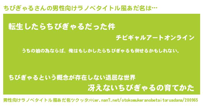 | 意味不明あだ名 | 『ちびぎゃるフォーエバー』 |