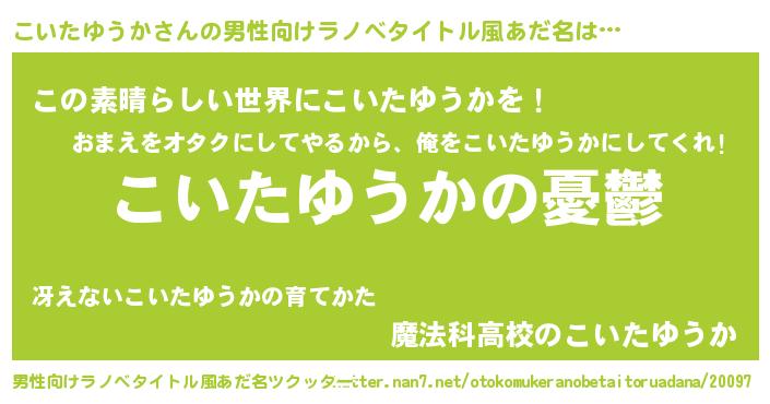 | 胡散臭い通販商品みたいなあだ名 | 『モテモテ間違いなし水晶球…その名も「こいたゆうか」』 |